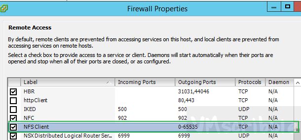 2016-04-12T19:33:13.314Z cpu0:33989 opID=a48a8747)NFS: 190: NFS mount 192.168.0.5:/nfs-test failed: The mount request was denied by the NFS server. Check that the export exists and that the client is permitted to mount it.