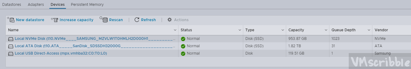 No VMFS datastore since the default systemMediaSize setting is 128GB - Dell OptiPlex 5070 Micro