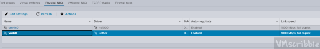 ESXi 8 – USB Network Driver vusb0 – Link Speed 100 Mbps