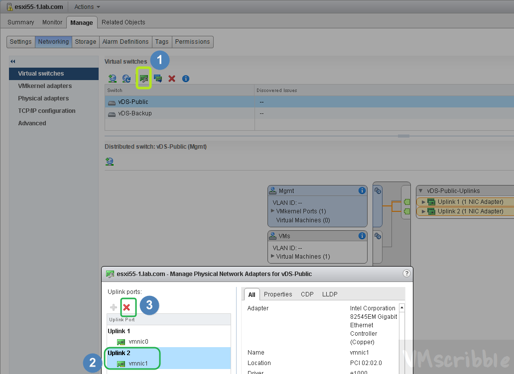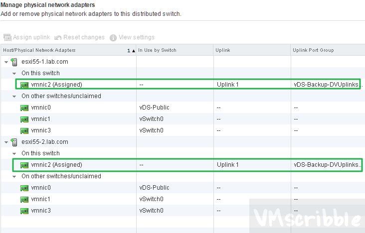 - Record the management and vmotion VMkernel adapters VLAN # & uplink#:VMNIC# vDS pairing. Ex. VMNIC3 uses uplink 2 for the Backup vDS.
