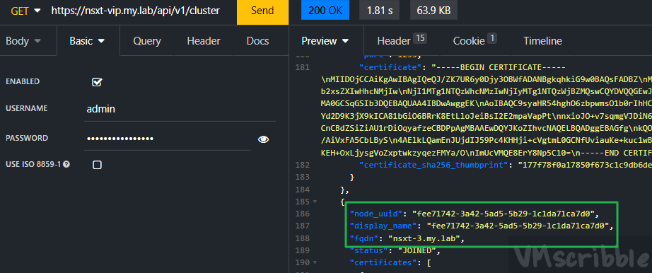- API – GET https://nsxt-vip.my.lab/api/v1/cluster