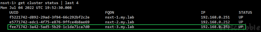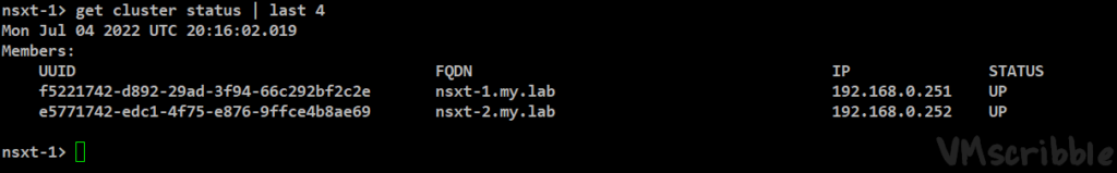 nsxt-3.my.lab 192.168.0.253 - get cluster status | last 4