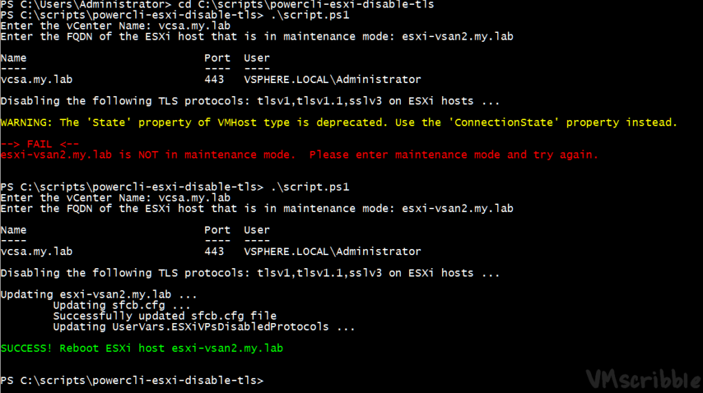 PowerCLI – Disable TLS 1.0 1.1 SSLV3 on ESXi 6.x while in maintenance mode