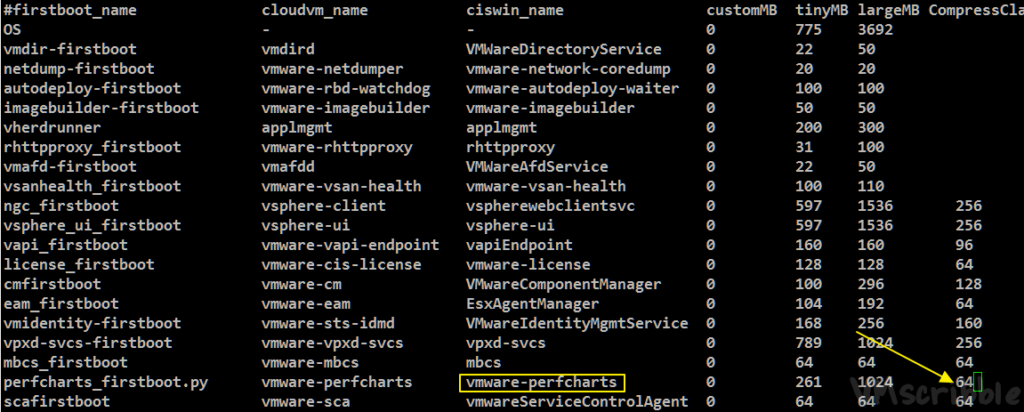 perfcharts_firstboot.py vmware-perfcharts vmware-perfcharts 0 261 1024 96service-control –start vmware-perfcharts