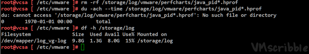 du -ach –time /storage/log/vmware/perfcharts/java_pid*.hprof
