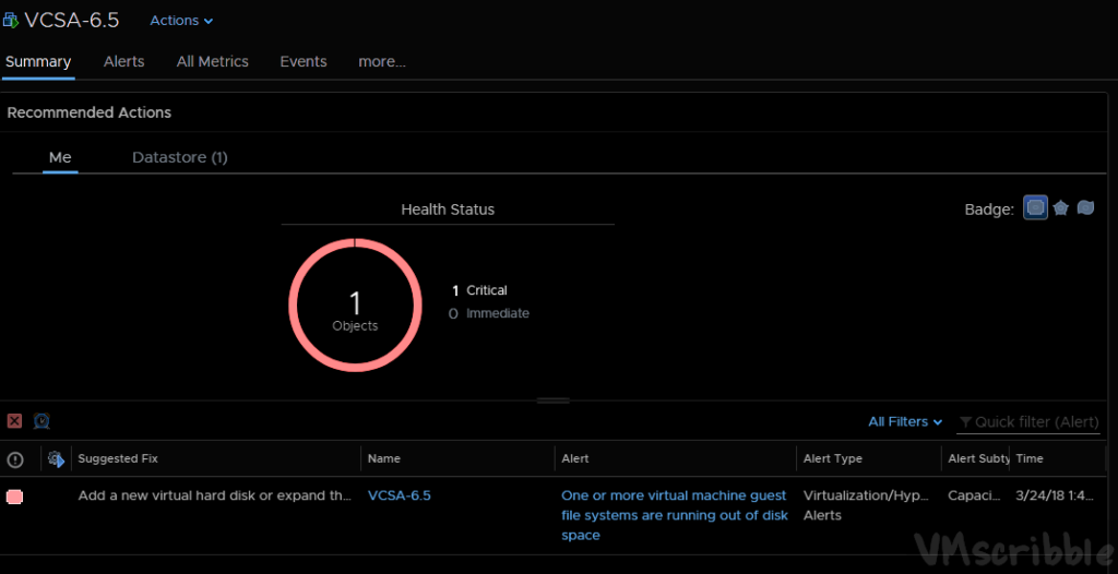 - vROps – Shows the alert and trend.