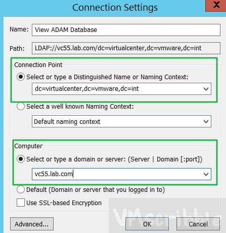 Connection Point – dc=virtualcenter,dc=vmware,dc=int